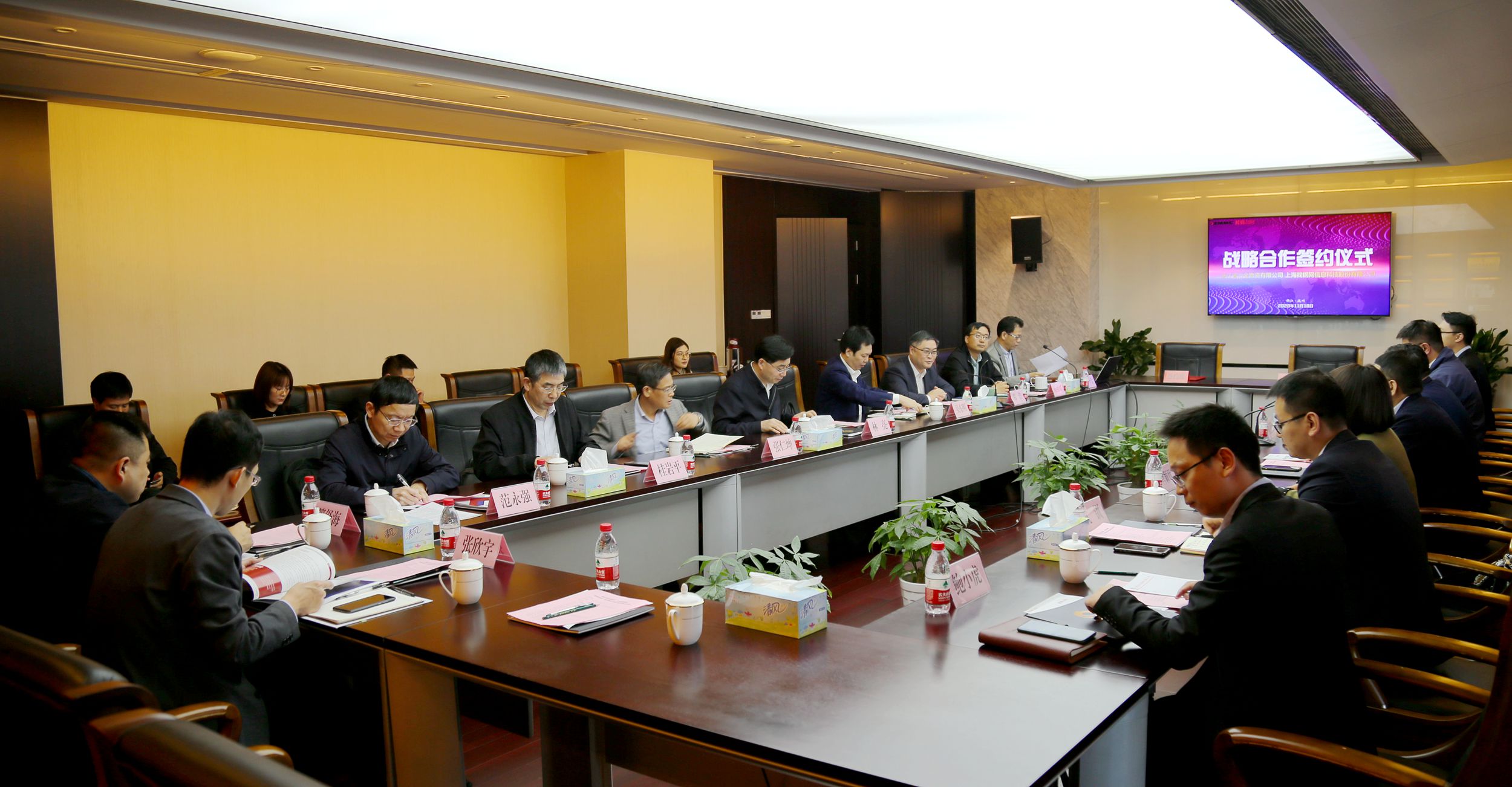 11月18日,江蘇沙鋼集團淮鋼特鋼股份有限公司總經(jīng)理蔣建平、總經(jīng)理助理袁文軍一行來冶金物資考察交流。冶金物資黨委書記、董事長鄭浩,總經(jīng)理鄔自強及相關(guān)人員熱情接待。雙方回顧了多年友好合作,并肩應(yīng)對市場挑戰(zhàn),實現(xiàn)共贏的發(fā)展之路,并就下一步合作進行了交流。